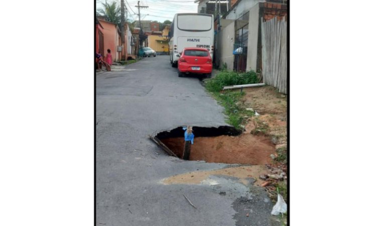Buraco no Colônia Terra Nova: dois veículos já caíram na cratera